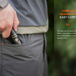 The Fenix E28R V2.0 Rechargeable EDC Flashlight is a great flashlight packed full of features for everyday use. This flashlight can shine a maximum of 1700 lumens at a distance of 896ft (273m). Powered by an included 18650 (3400mAh) Li-ion battery, this flashlight is fully rechargeable via its USB Type-C charging port. A convenient side switch activates all lighting modes and includes a battery level indicator—helping you always know the status of your battery. Activate the pulse light for a great indicator light to know where you left your light. A two-way body clip and a magnetic base offer different hands-free lighting methods. Waterproof and dustproof, the Fenix E28R V2.0 Rechargeable Flashlight is a great everyday carry tool.