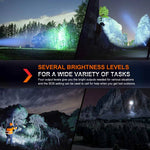 The Fenix HT18R Long-Distance Flashlight is the evolution of the favored HT18. This upgraded flashlight can now throw a maximum of 2800 lumens an amazing 3,609ft (1100m)—that’s over 1200 yards! Dual tail switches operate on/off and all lighting modes including SOS in case of an emergency. Hunters will appreciate the included red or green filters allowing you to change the color of the light to preserve your night vision and reduce the chance of spooking prey. Easily recharge this spotlight via its USB Type-C charging port and know its battery’s status with the battery level indicator. IP68-rated waterproof (including the charging port) rounds out the features of this spotlight built for those needing a tough flashlight with an incredibly far beam distance.