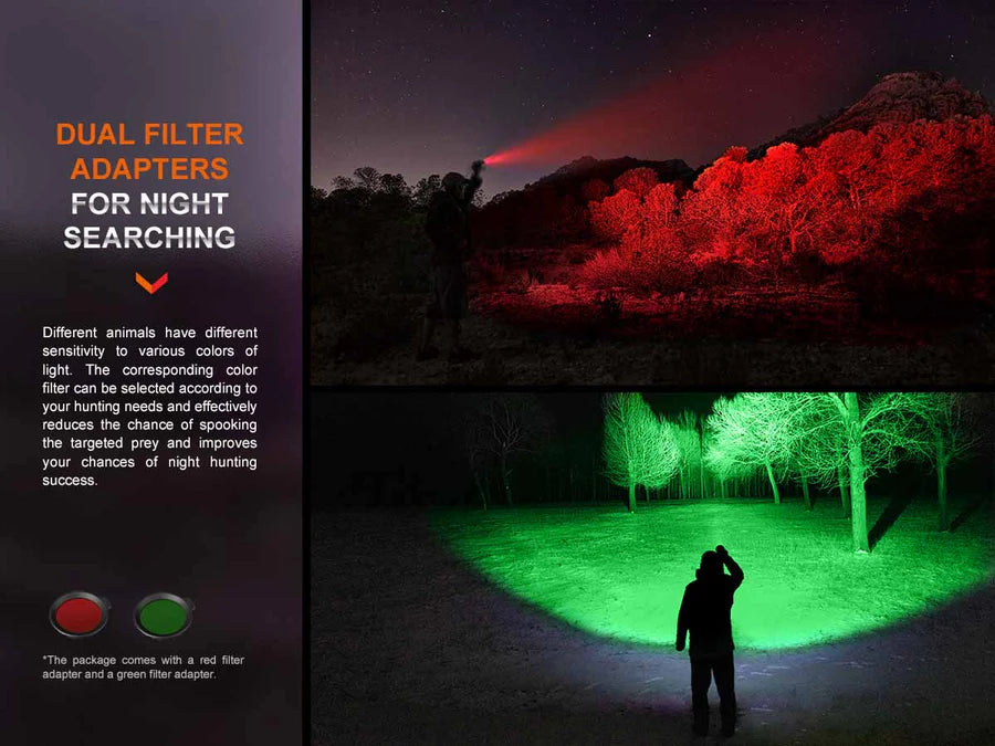- Included red and green filter adapters.