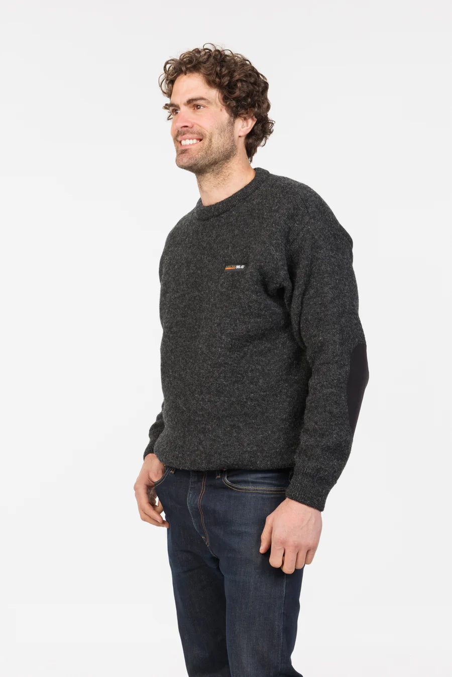 Our bestselling jersey, now in a classic Crewneck style! The iconic Tasman Crew is crafted with our unique double layer system - featuring a 100% NZ wool outer and ultra soft EcoBlend lining, designed to regulate your body temperature (36.6) for ultimate comfort. Durable yet soft enough to wear against the skin, this jersey is built for work and everyday wear. The classic crewneck design offers a streamlined fit with no bulk around the neck, while black suede elbow patches add extra reinforcement for tough conditions. Available in Coal and Navy, both with a Black inner lining.