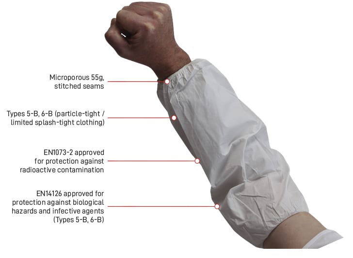 - EN14126 approved for protection against biological hazards and infective agents (Types 5-B, 6-B)